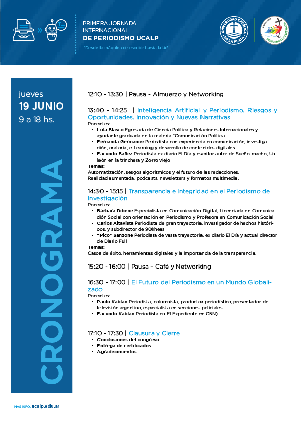 • Inscripciones online → Jornada Internacional de Periodismo UCALP.